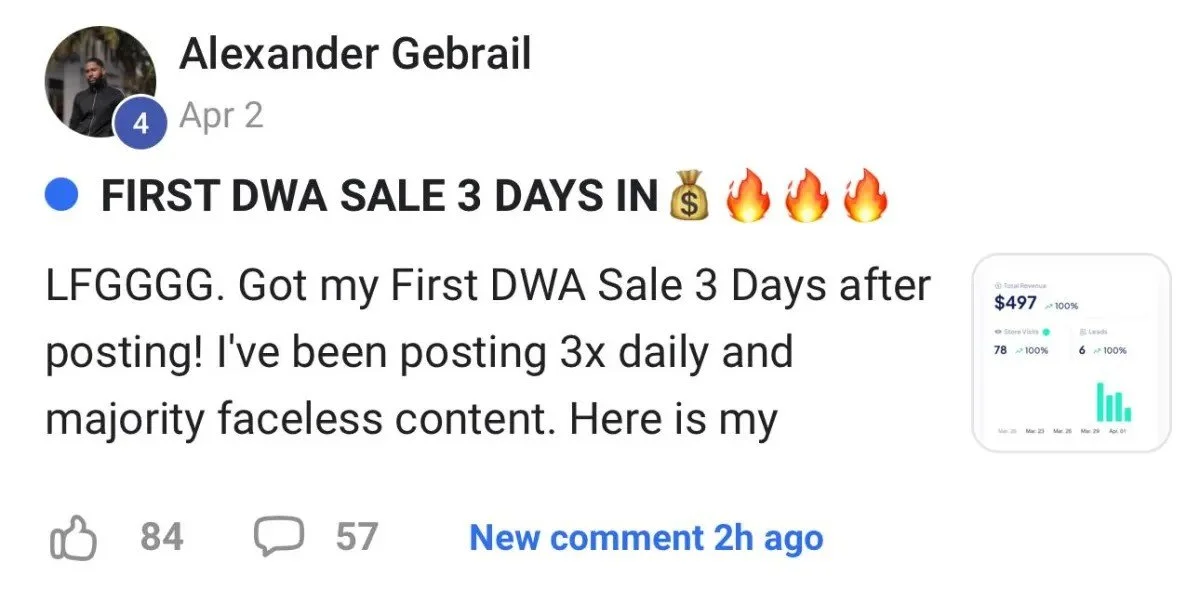 DWA Community: Connect with an amazing community of 100,000+ aspiring entrepreneurs inside the course!